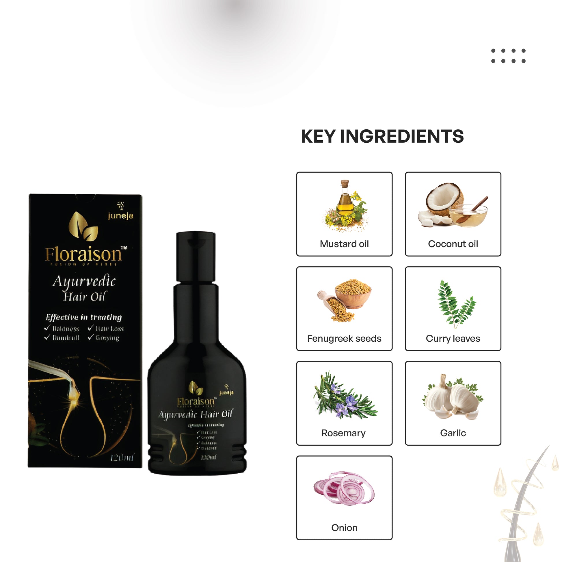 Floraison Ayurvedic Hair Oil 120ML For Dandruff, Hair Fall, Regrowth & Pre Mature Greying